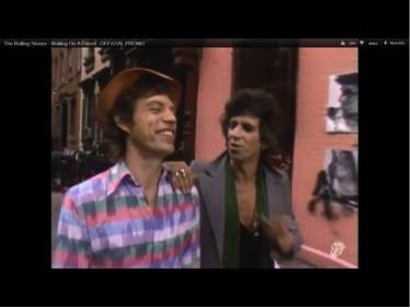 This one day in July 1981 as I was walking down St Marks, I saw ahead of me crowds, barriers, trucks and large lighting rigs. I wandered up past and through the heads and crowds to see over the barriers to Mick and Keith being filmed as they left one of the stoops and wandered smiling and laughing due west on the south side of the street. They continued walking to where the barriers held back the observing crowds, me included. This occurred a few times as they tried further takes and progressively a small group of Latinos standing at the barriers started to shout protests about the goings on in Central America.